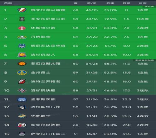 北京時間2月27日,我們看看NBA西部的最新排名!雷霆和馬刺勝場數都突破了40+,暫列第一和第二,火箭、掘金和森林狼都是37場勝利,暫列第3-第5名,湖人近期遭遇三連敗,下滑第6名。附加賽區的球隊分別是太陽、勇士、開拓者和快船。排在最后5名的分別是灰熊、獨行俠、爵士、鵜鶘和國王!