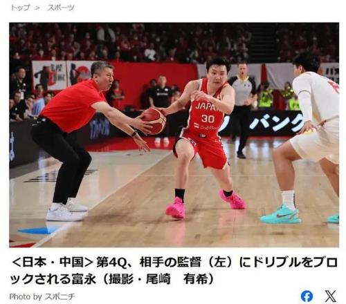該媒體在發(fā)布相關(guān)報道時,特意將郭士強“搶斷”日本球員富永啟生的照片作為新聞封面,配文稱“第四節(jié)比賽中,富永啟生在突破過程中遭到中國主教練攔截”,文中詳細(xì)描述了這一行為,并以此為由指責(zé)中國男籃的勝利不夠光彩。據(jù)悉,富永啟生在本場比賽中貢獻14分,是日本隊的核心球員之一,而郭士強的這次攔截行為,發(fā)生在比賽第四節(jié)的拉鋸階段。