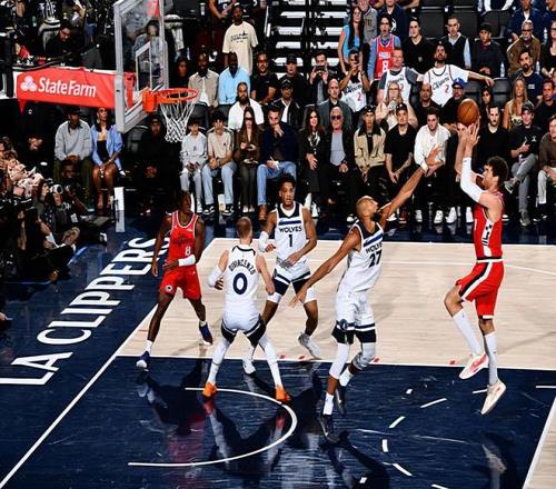 在此前的一場NBA常規(guī)賽中,明尼蘇達(dá)森林狼以94比88戰(zhàn)勝了主場作戰(zhàn)的洛杉磯快船。本場比賽后,拿下了兩連勝的森林狼的戰(zhàn)績提升到了37勝23負(fù),繼續(xù)排名西部第5位,與身前的丹佛掘金的勝場差為半場,與身后的洛杉磯湖人的勝場差為兩場;而遭遇了3連敗的快船的戰(zhàn)績則是下滑到了27勝31負(fù),繼續(xù)排名西部第10位,與身前的開拓者的勝場差為1場,與身后的孟菲斯灰熊的勝場差為5.5場。