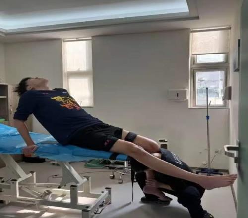 廣州某康復中心,張昊坐在輪椅上,膝蓋纏滿繃帶,疤痕清晰可見。他沒有哭,沒有抱怨,只配文:“康復進行中,不放棄,等回來。”