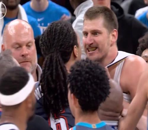 穆雷三分止血后,約基奇打板拋投,霍姆格倫連續吃餅暴扣,約基奇今天可沒罰球,還是亞歷山大“強”。兩隊維持8分左右陷入拉鋸戰,中段約基奇和亞歷山大對飆,約基奇帶隊拉開10分分差。后半段穆雷再中三分,亞歷山大連續單打,三節打完時,雷霆追到77-83。決戰第四節,雷霆這邊下三分雨,多特和杰林多點開花,一波11-2反超掘金。此時發生意外:多特發力直接撞翻約基奇,約基奇在第四翻滾幾圈后,起身暴怒,準備和多特打架。杰林沖上來撕扯約基奇球衣,約基奇又和雷霆球員扭打到一起,場面陷入混亂!