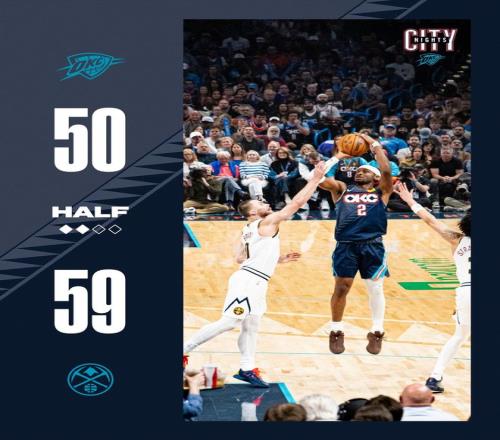 掘金隊的布勞恩上半場得到14分,哈達威得到12分,約基奇得到11分、9個籃板和4次助攻;雷霆隊的亞歷山大得到18分。
