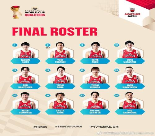 有變化!日本男籃對陣韓國12人大名單用霍金森替換科克