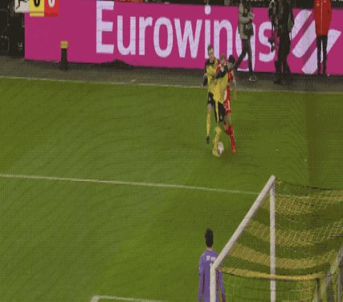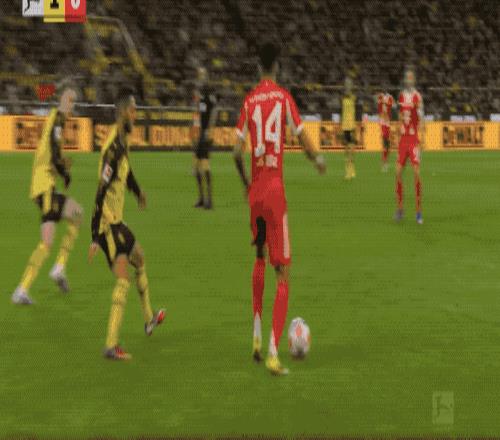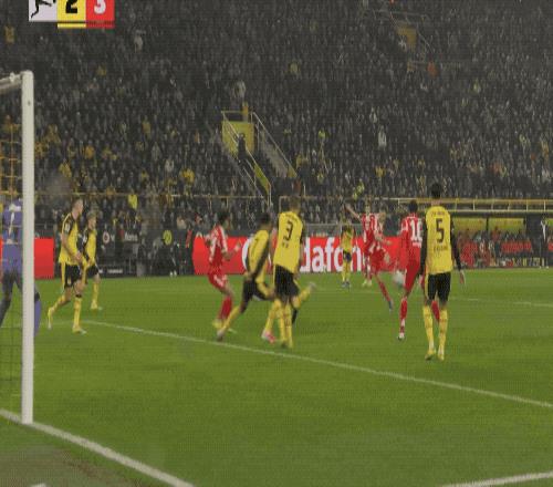 第32分鐘,多特蒙德的進攻簡單直接,斯文松傳中,拜爾背對球門,射門有些勉強。