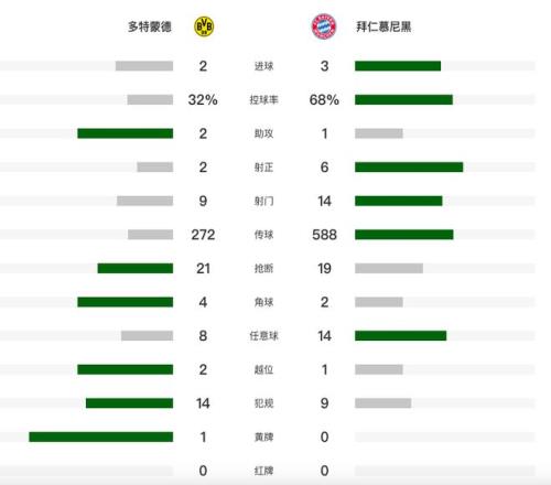北京時間3月1日凌晨,德甲第24輪迎來國家德比,多特蒙德坐鎮主場迎戰拜仁。第26分鐘,施特羅貝克頭槌破門,這是多特蒙德的第一次射門。第54分鐘,格納布里助攻凱恩破門。第70分鐘,施特羅貝克送點,凱恩點射梅開二度。第83分鐘斯文松扳平比分,4分鐘后基米希絕殺。最終,總身價9.6億的拜仁客場3-2戰勝多特蒙德,終結大黃蜂的16輪不敗,在還剩10輪的情況下,領先多特蒙德11分。