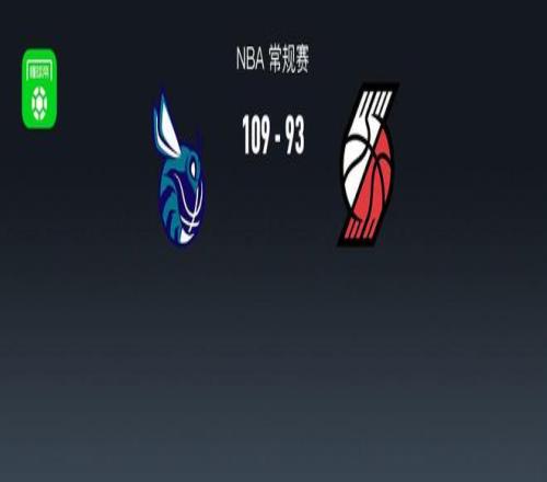 第四節黃蜂科比-懷特拿下9分,開拓者朱-霍勒迪拿下6分,最終黃蜂109-93戰勝開拓者