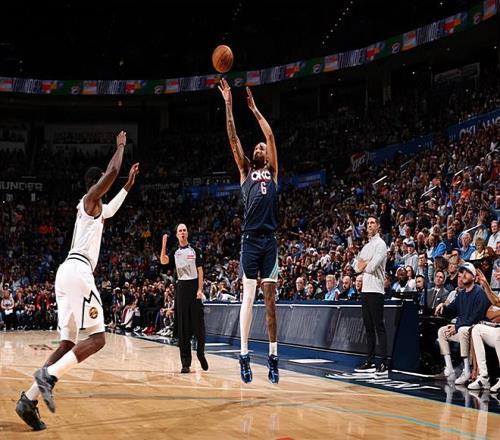 本場比賽中,雷霆的替補中鋒杰林-威廉姆斯(Jaylin Williams)也是延續了自己最近一段時間的不俗表現。威廉姆斯全場出場25分52秒,投籃7中4,三分線外4中2,罰球2中2,得到了12分5籃板3助攻1蓋帽的數據,還有1次失誤和2次犯規,正負值更是達到了全場最高的+17。威廉姆斯在進攻端展現出了相當不錯的得分能力,他的出手次數并不多,但是他的得分能力其實還是比較全面的,他在外線投籃方面的穩定性以及他在傳球和策應方面的表現都是值得肯定的。威廉姆斯在防守端也沒有出現什么問題,也算是扛起了球隊內線的防守大旗。威廉姆斯在本場比賽中在場上的效果相當不錯,這也能夠體現在他超高的正負值上,他簡直是打爆了掘金的替補中鋒約納斯-瓦蘭丘納斯(Jonas Valanciunas)。