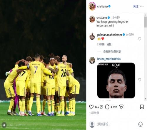 賽后,C羅在社交媒體上寫道:我們攜手共進,這是一場非常重要的勝利。