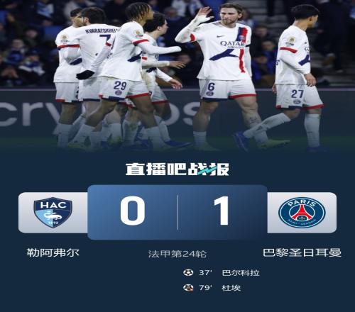 巴黎1-0擊敗勒阿弗爾,以4分優勢領跑法甲。巴爾科拉打進本場唯一進球。