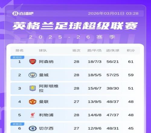 英超爭冠日趨白熱化,最新比賽后,曼城距榜首阿森納2分。