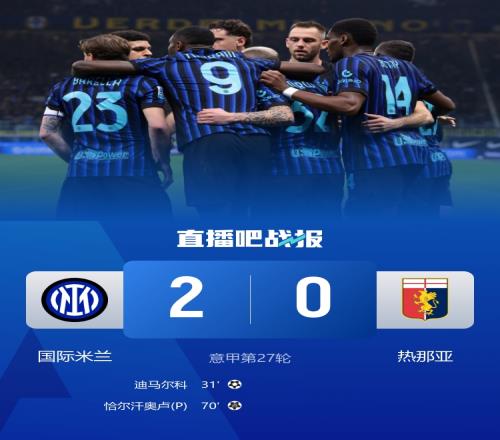 國米2-0擊敗熱那亞,意甲豪取8連勝,近15輪14勝1平!先賽暫時13分領跑積分榜!