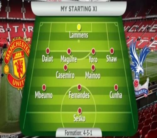 體育播報(bào)3月1日宣 北京時(shí)間3月1日22:00,2025-26賽季英超聯(lián)賽第28輪,曼聯(lián)將坐鎮(zhèn)老特拉福德球場(chǎng)迎戰(zhàn)水晶宮。賽前,《曼徹斯特晚報(bào)》預(yù)測(cè)了曼聯(lián)本場(chǎng)比賽可能的首發(fā)陣容。