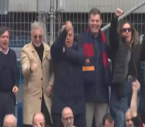 報道稱,拉波爾塔又一次在看臺上成為焦點。在巴塞羅那對陣比利亞雷亞爾的比賽中,這位巴薩前主席被Esport3的攝像機鏡頭捕捉到不尋常的一幕:當看臺上部分球迷高唱“跳起來,跳起來,是皇馬球迷就別跳”時,拉波爾塔不僅加入合唱,還在座位上隨著節奏跳動,同時做出了一個打傘的不雅手勢。