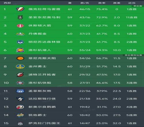 北京時間3月1日,今天的NBA常規賽已經結束了所有比賽,我們看看西部的最新排名!今天出戰比賽的西部球隊有火箭、湖人、勇士、開拓者、鵜鶘和爵士!
