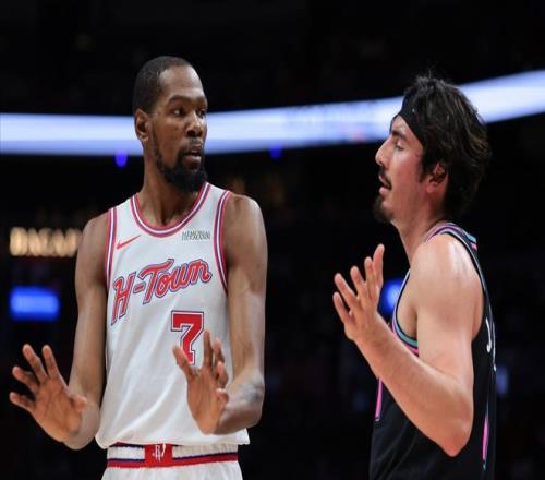 休斯頓火箭攜三連勝之威奔赴南海岸,客場挑戰邁阿密熱火,雙方僵持到最后三分鐘決戰,航天城遭遇崩盤,最終以10分之差兵敗美航球館。此役,杜蘭特運動戰20投12中,交出32分5籃板8助攻2蓋帽的成績單,面對熱火末節近乎瘋狂的包夾,他全場只出現1次失誤,可以說是拉滿了,可惜的是忙活了37分鐘,最終還是難逃空砍的命運。歸根結底,小賈巴里-史密斯的缺席,讓火箭此前好不容易建立起來的贏球邏輯失效,引起了一系列的連鎖反應。