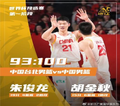 中國男籃10093戰勝中國臺北!朱俊龍19分4板2助&胡金秋15分6板!