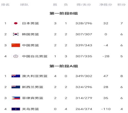 稍早時候結(jié)束的三場比賽,中國隊100-93逆轉(zhuǎn)中國臺北隊,日本隊78-72擊敗韓國隊,新西蘭隊99-67大勝關(guān)島隊。
