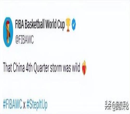 賽后,FIBA官方點贊中國男籃發文:“中國男籃在第四節打出的那波風暴真是太猛了!”
