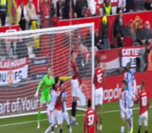 緊接著曼聯又獲得前場左路的定位球,B費傳中送到后點,卡塞米羅頭球頂偏。