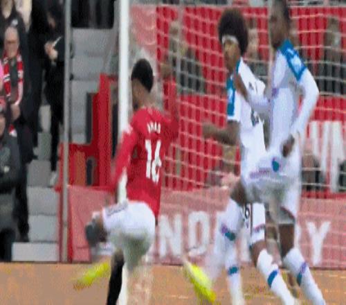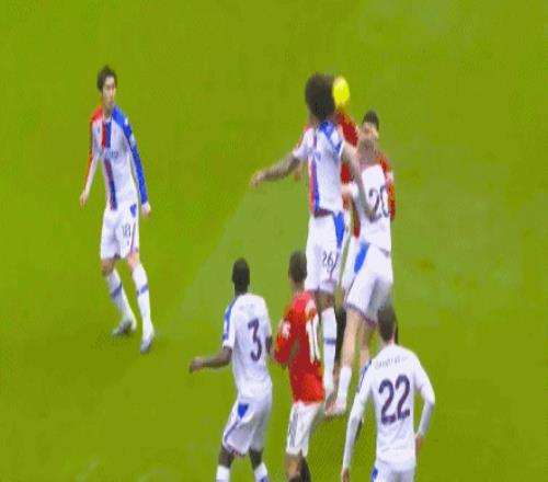 易邊再戰,第52分鐘,曼聯球員B費左路直傳禁區,庫尼亞被拉克魯瓦拉拽倒地,裁判第一時間判罰點球,隨后回看VAR追加紅牌,水晶宮剩下10人作戰。