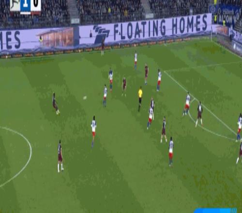 第23分鐘,邁克爾布倫西斯倒三角傳球,法比奧-維埃拉破門,漢堡1-0