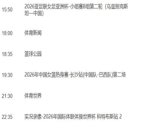 同樣,中超首輪在3月7日、8日分別進(jìn)行的5場(chǎng)、2場(chǎng)比賽,暫時(shí)也都沒(méi)有進(jìn)入央視節(jié)目單。不過(guò),從節(jié)目單來(lái)看,央視似乎預(yù)留有轉(zhuǎn)播窗口。比如,3月7日下午時(shí)段,CCTV5安排播出的是2026年米蘭科爾蒂納冬殘奧會(huì)-輪椅冰壺混合團(tuán)體(美國(guó)-中國(guó));CCTV5+則都是實(shí)況錄像(2026年世界職業(yè)拳王爭(zhēng)霸賽3、2025/2026賽季斯諾克威爾士公開(kāi)賽2、2026年世界泳聯(lián)跳水世界杯 加拿大站1),完全具備轉(zhuǎn)播條件。相應(yīng)時(shí)段的比賽有:天津津門虎VS重慶銅梁龍,山東泰山VS遼寧鐵人,上海申花VS大連英博。
