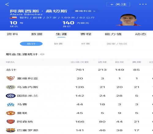 桑切斯現年37歲,他與塞維利亞的合同在今夏到期,他現身價140萬歐,他曾經效力過巴薩、阿森納、曼聯、國米等隊,2018年時巔峰身價曾高達7000萬歐。