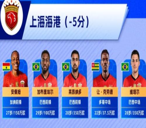 上海海港五外援均無五大聯賽履歷,他們主要效力于葡超、土超、巴甲,亞洲地區聯賽