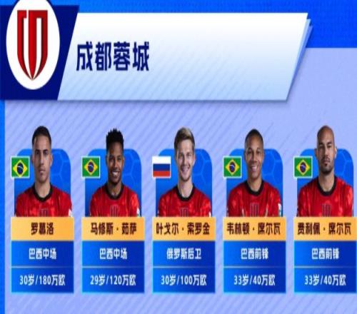 成都蓉城五外援:羅慕洛180萬歐、茹薩120萬歐、索羅金100萬歐、費利佩和韋林頓均為40萬歐,外援總身價480萬歐