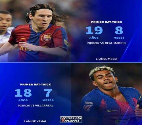 德轉盤點首次戴帽年齡:姆巴佩17歲、亞馬爾18歲、梅西19歲