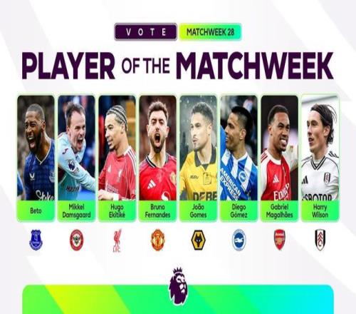 北京時(shí)間3月2日,英超官方公布聯(lián)賽第28輪最佳球員候選名單,這8名球員為貝托、達(dá)姆斯高、埃基蒂克、布魯諾-費(fèi)爾南德斯、若昂-戈麥斯、迭戈-戈麥斯、加布里埃爾、哈里-威爾遜。