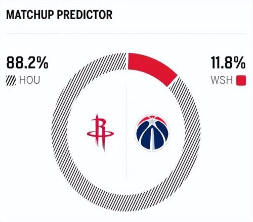 賽前,美媒ESPN對(duì)本場(chǎng)比賽進(jìn)行了勝率預(yù)測(cè),火箭隊(duì)勝率高達(dá)88.2% ,奇才勝率則僅有可憐的11.8% ,差距非常明顯。