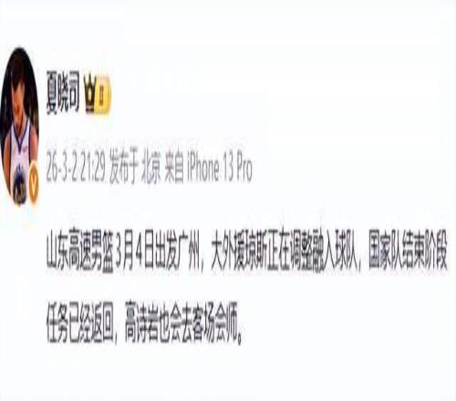 夏曉司說:“差不多第一場。”是5號對廣州?還是第二階段揭幕戰?沒人敢斷言。但關鍵不是時間,是他來了。山東的小外,從鮑威爾的低效到珀塞爾的波動,早已是全聯盟笑柄。如今,俱樂部終于出手——一個打過NBA、沒來過CBA、實力不俗的“神秘人”。他不一定是得分王,但他必須是那個能在最后30秒,一記干拔終結比賽的人。