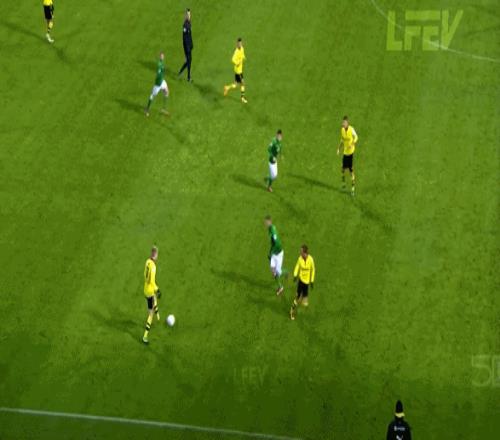 兩人看似都是前腰,都活動在中鋒的身側,而且也都可以活動到邊路,但羅伊斯的身體天賦明顯好于布魯諾,這不是在說羅伊斯的對抗多好,而是體現在他的帶球速度明顯更快,而且在高速向前的過程中,羅伊斯依然能夠穩定處理球。