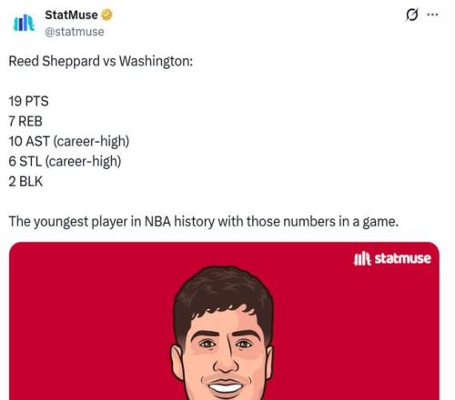 轟19分7板10助6斷2帽全能數據,謝潑德一戰連創4大紀錄!首發出戰時9戰7勝三點原因成火箭隊破局關鍵。