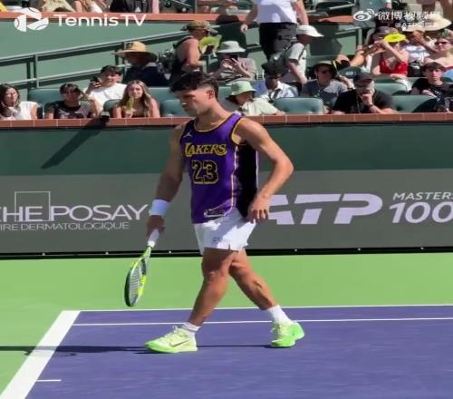 阿爾卡拉斯新造型亮相印第安維爾斯,身穿湖人詹姆斯球衣