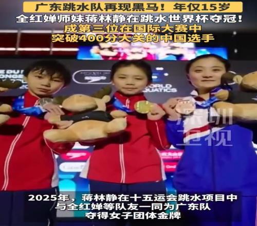 蔣林靜跳水世界杯10米臺奪冠,成第3位突破400分大關的中國女選手