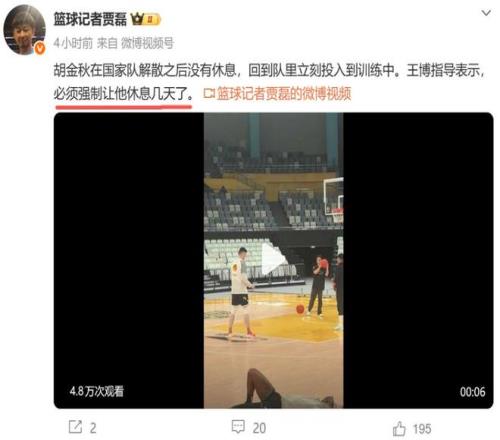 而在國家隊任務結束后,胡金秋并沒有休息,而是立刻返回球隊,投入到了廣廈的備戰訓練中,就連廣廈主帥王博都表示:“必須強制讓他休息幾天了。”而胡金秋這樣的敬業精神,也引得球迷的一致肯定:“發型、刻苦度、沉穩感覺都有點像姚明,大秋就是目前男籃最靠譜的人,比周琦他們幾個感覺都沉穩。”