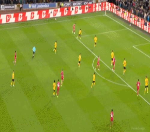 第90+4分鐘,阿利松出球不力,安德烈打門變線入網(wǎng),狼隊(duì)2-1!