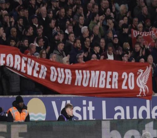 比賽進(jìn)行到第18分鐘和第20分鐘時,雙方球迷都發(fā)出呼聲,紀(jì)念迪奧戈-若塔,這兩個時間點對應(yīng)著他在各自俱樂部曾穿的球衣號碼。客隊球迷區(qū)還展開了一條橫幅:“謝謝你若塔 —— 永遠(yuǎn)是我們的20號。”