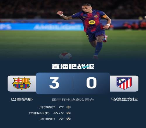 巴薩總比分3-4遭馬競淘汰!貝爾納爾雙響,拉菲尼亞點射,孔德、巴爾德傷退。
