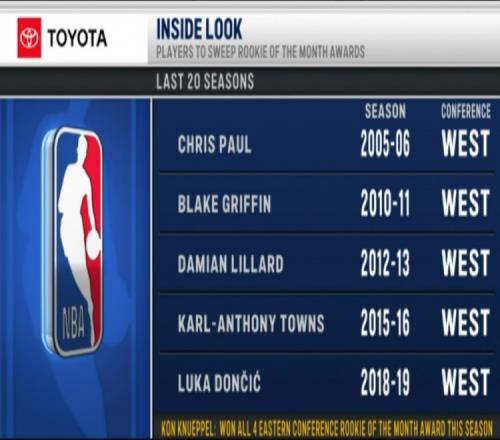 本賽季至今,克尼佩爾已經獲得了四次月最佳新秀,他包攬了東部所有的月最佳新秀獎;以此趨勢,他有望成為過去20年第六位包攬所有月最佳新秀的球員,前五位分別是: