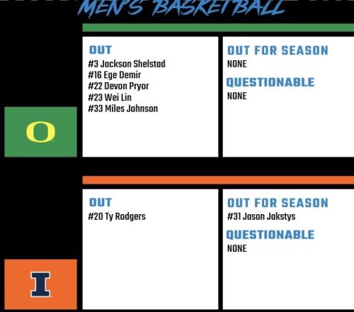 在賽前出示的傷病報(bào)告中,俄勒岡有5名球員無法出戰(zhàn),林葳在列。