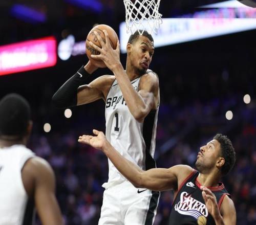 全場34次三分出手僅命中9球,除文班亞馬外,僅有瓦塞爾和卡斯爾得分上雙,球隊整體表現難言理想。而76人上場比賽同樣被凱爾特人終結連勝,33勝27負的戰績位列東部第六!恩比德上一場缺陣,馬克西空砍33分6助攻,埃奇庫姆拿到23分,其余球員表現平平。德拉蒙德中規中矩貢獻10分12籃板,巴洛有14分8籃板入賬,烏布雷10投僅2中,替補席四人合計僅得14分。目前 76 人陣容深度一般,喬治被禁賽,恩比德打打停停,確實傷害球隊。此役,恩比德繼續缺陣,賽前,美媒ESPN預測本場比賽,馬刺勝率62.9%,76人勝率37.1%。首節比賽開打,首節馬刺依靠團隊進攻逐步壓制殘陣76人,馬刺單節22投11中,命中率達到五成,三分11投3中。文班亞馬雖無運動戰出手,但依靠罰球2中2得到2分,另有3籃板1助攻4蓋帽,防守端威懾明顯;哈珀5投4中砍下11分,福克斯貢獻5分5助攻。76人28投9中,三分11投5中,馬克西7投2中得到8分5籃板2助攻,埃奇庫姆6投1中僅得2分。首節戰罷,馬刺32-25領先76人。