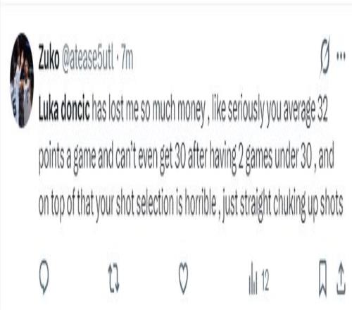 一些球迷認為東契奇多次選擇糟糕的出手選擇,而且出現太多低級失誤。