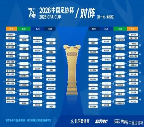 3月4日,2026賽季中國足協杯第1-4輪抽簽結果出爐,本賽季足協杯一共80隊參賽。中甲隊第3輪登場,中超隊第4輪登場。第1-4輪比賽,90分鐘內打平直接進行點球大戰,第4輪比賽結束之后,1/8決賽階段前,將進行第二次抽簽。