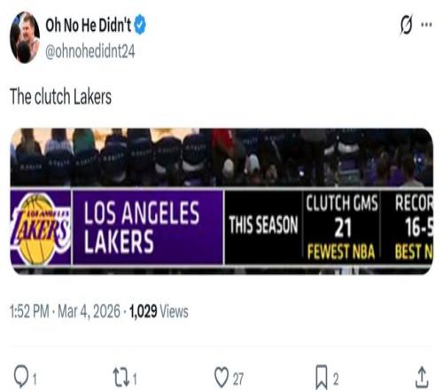只不過,湖人隊(duì)本賽季僅22次進(jìn)入關(guān)鍵時刻聯(lián)盟最少,也是這支湖人隊(duì)特點(diǎn)的縮影,要么直接打花比賽,要么直接被對手打花,很少進(jìn)入艱難的拉鋸階段。