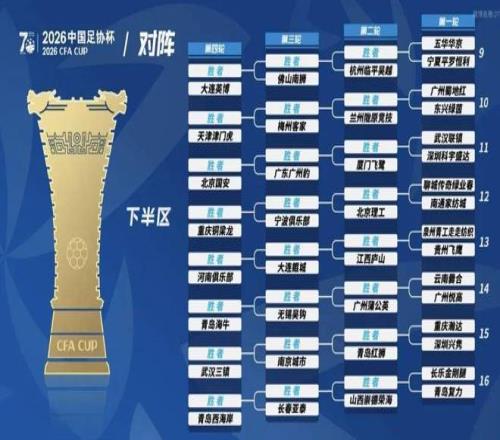 根據(jù)競(jìng)賽方案,2026中國(guó)足協(xié)杯為主客場(chǎng)單敗淘汰賽制。80支球隊(duì)分為四檔,其中,16支中超球隊(duì)為第一檔球隊(duì),16支中甲球隊(duì)為第二檔球隊(duì),在19支中乙球隊(duì)中本年度中乙聯(lián)賽準(zhǔn)入名單及遞補(bǔ)名單排名靠前的16支球隊(duì)為第三檔球隊(duì),剩余三支中乙球隊(duì)及29支業(yè)余球隊(duì)為第四檔球隊(duì)。