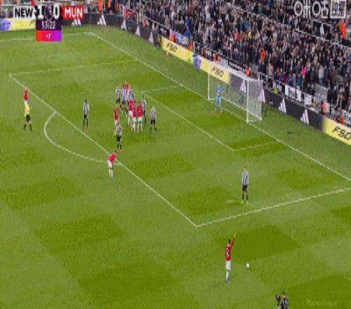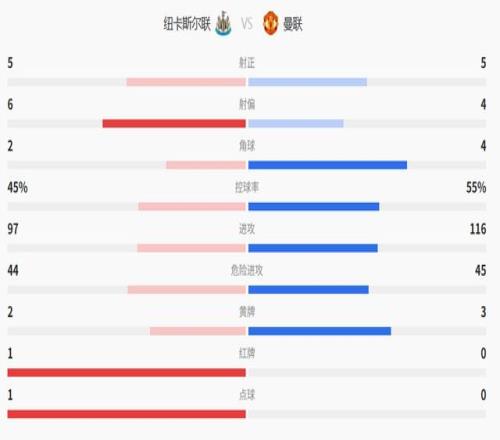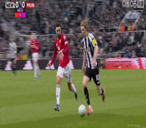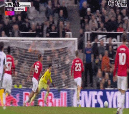 但兩分鐘后,B費在禁區內放倒戈登,主裁判判罰點球。戈登親自主罰命中,紐卡1比0領先。多打一人的曼聯反而先丟球。