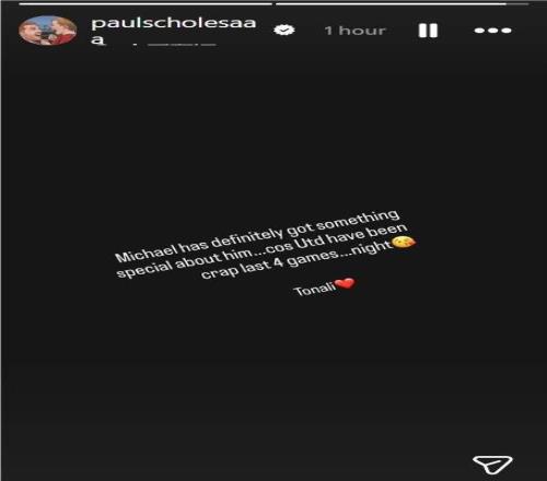 “邁克爾(卡里克)身上肯定有某種特別之處……因為曼聯最近4場比賽表現簡直爛透了……晚安托納利。”
